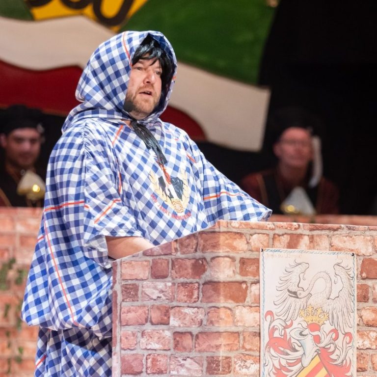 Sebastian war 2024 das erste Mal als Büttenrendner aktiv und stand als Hausmeister auf der großen Bühne. Im Jubiläumsjahr 2025 stellte er den Hofnarr dar und brachte das Publikum zum beben.